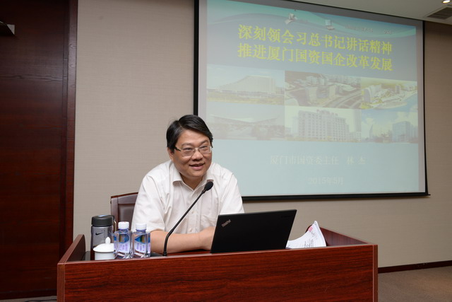 在輔導(dǎo)會上,林杰主任結(jié)合習(xí)總書記講話精神,解讀了新時(shí)期國資國企在經(jīng)濟(jì)社會發(fā)展中的定位和作用,系統(tǒng)分析了新時(shí)期國資國企改革的目標(biāo)和主要課題,重點(diǎn)通報(bào)了廈門市“十三五”國資國企改革的主要思路和保障措施,并結(jié)合大量的案例強(qiáng)調(diào)了在新常態(tài)下,廈門國企如何通過產(chǎn)融結(jié)合、產(chǎn)資結(jié)合、產(chǎn)城結(jié)合,在投身美麗廈門建設(shè)的同時(shí)實(shí)現(xiàn)自身的科學(xué)發(fā)展、跨越發(fā)展。