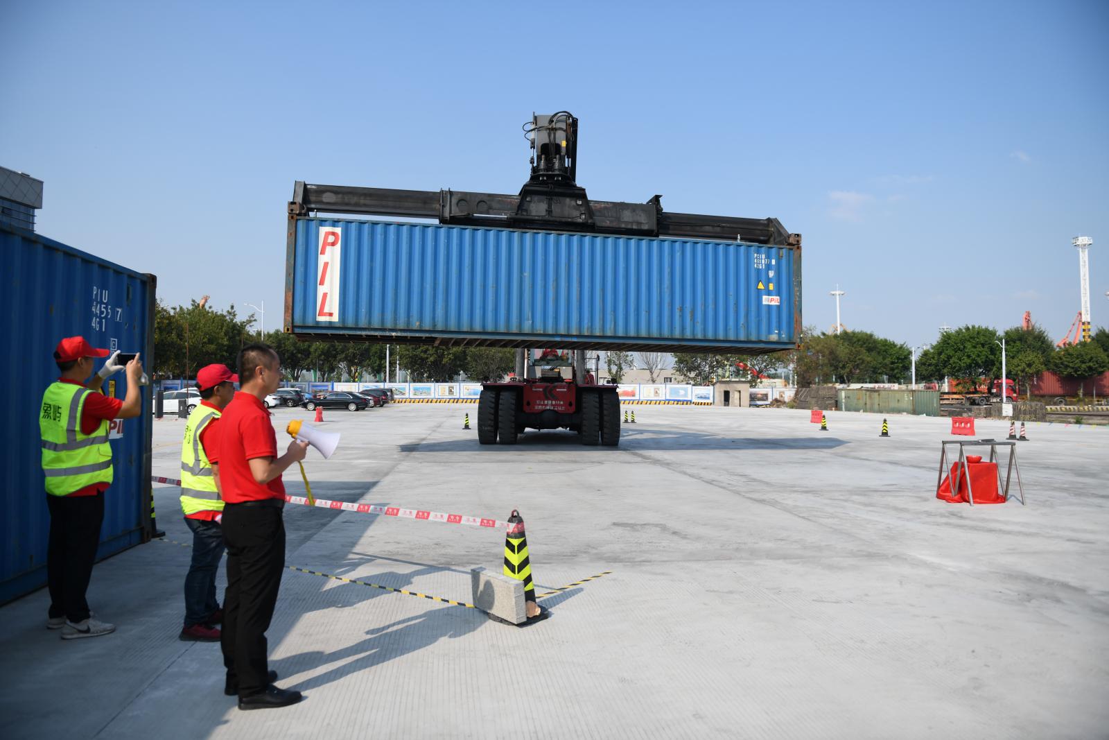 在市級(jí)A類職工技能競(jìng)賽中,該比賽項(xiàng)目為國(guó)內(nèi)首創(chuàng)。象嶼集團(tuán)工會(huì)和技術(shù)支持單位卡爾瑪中國(guó)共同研究創(chuàng)制了比賽規(guī)則。賽事共吸引廈門市近20家場(chǎng)站物流單位的45名司機(jī)報(bào)名,代表了廈門港口行業(yè)大型設(shè)備操作技能的最高水平。