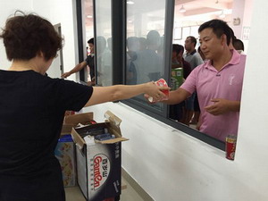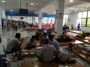 漁港停滿了來自兩岸的漁船,在工作人員的疏導下,漁民們也都上岸避風了。上千漁民被安置在了漁港旁的避險中心,免費的食品是這個臺風天最溫暖的禮物?;蚓筒停蛐菹?,由于處置得當,漁民們并沒有臺風來臨的慌亂。有電視有空調(diào),漁民都說,也只有廈門的避險中心才有這么好的條件。