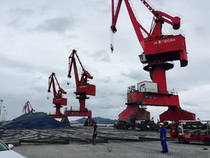 碼頭早已清場,所有大型設(shè)備均已拉上防風鎖。現(xiàn)場還有工作人員進行最后的加固工作,水泥擋板后面是銅精礦倉庫。碼頭很大,為確保萬無一失,工作人員24小時守候監(jiān)控,隨時排除險情。