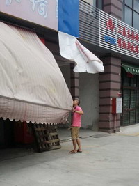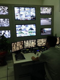 園區(qū)值班人員一邊早早通知經(jīng)營商戶檢查防臺加固,一邊隨時監(jiān)控著園區(qū)的安全狀況。