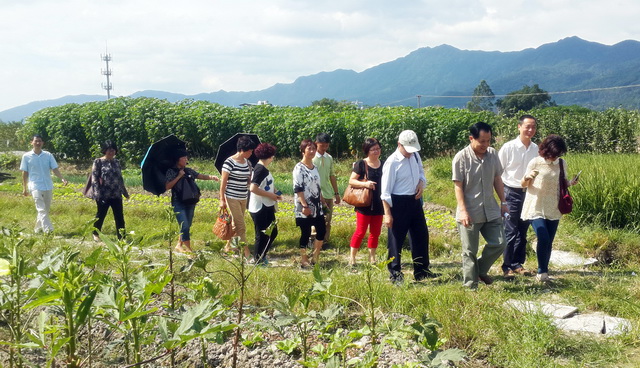 活動當(dāng)天大家正趕上當(dāng)?shù)靥厣L(fēng)俗活動:山口廟廟會,有祈求國泰民安之意。在山莊老板的帶領(lǐng)下,各位退休員工散步在田間小路上。吹著清新的風(fēng),聞著稻花香,看著各式各樣的農(nóng)作物,聽著生態(tài)、立體農(nóng)業(yè)的介紹……沒有城市的嘈雜,也沒有柴米油鹽的叨擾,有的只是自然的親近和老朋友的聚會。