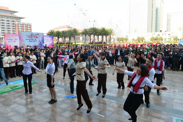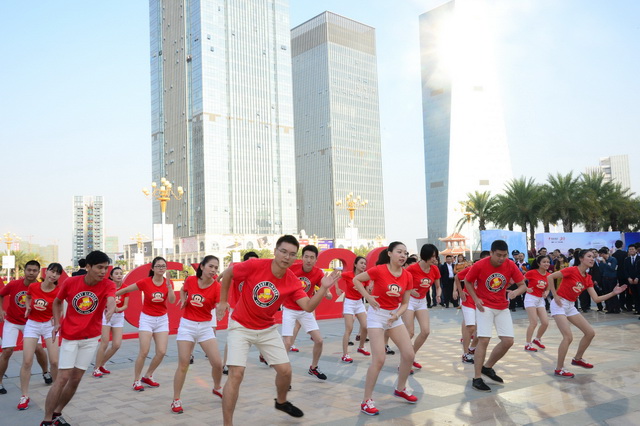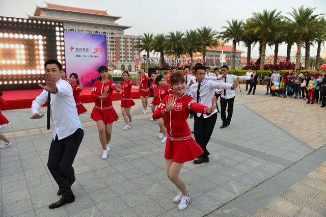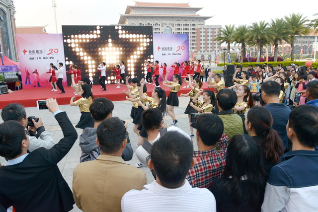 舞臺(tái)上,廣場(chǎng)中,各家公司帶來的現(xiàn)場(chǎng)快閃表演拉開了整場(chǎng)嘉年華的帷幕。精彩的舞蹈,勁爆的歌聲,引來陣陣掌聲。