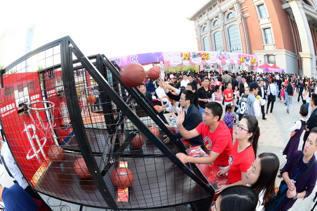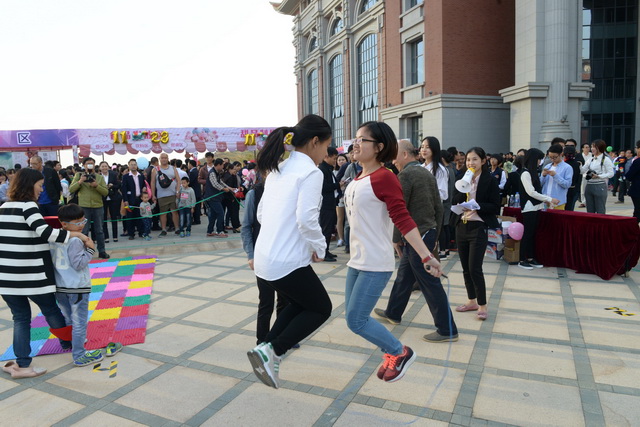 如果說,舞蹈、歌唱帶給我們的是視聽享受,那么在互動(dòng)游戲區(qū),我們更是能夠融入其中,與身邊的小伙伴,玩在一起,樂在一起。只見游戲區(qū)的一位小朋友嫻熟地朝籃框內(nèi)投球,一瞄準(zhǔn)、一伸脖、一出手,連貫的動(dòng)作如風(fēng)馳電掣。 “桃花朵朵開”讓一對(duì)因?yàn)橛螒虮г谝黄鸬膸浉缑琅呒t了臉;“60秒不NG”讓員工和孩子們相互配合,歡笑不斷;“狂運(yùn)籃球接力賽”讓圍觀的群眾情不自禁或加油助威,或扼腕嘆息。獲勝的人抱著刻有象嶼集團(tuán)20周年紀(jì)念的獎(jiǎng)品,引來一波又一波艷羨的眼光和聞?dòng)嵹s來摩拳擦掌的人群。