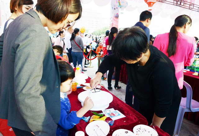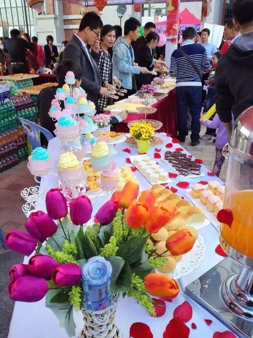 在這喧囂熱鬧中,有一個(gè)地方排起了一溜長(zhǎng)隊(duì)。這里就是食品區(qū)了,吃貨們?cè)缫驯贿@琳瑯滿目的飲料,小巧精致的甜品惹得食指大動(dòng)啦~吃了享受美食,精心設(shè)置的蛋糕DIY環(huán)節(jié),也讓大朋友、小朋友興奮不已,抹奶油、裱花、畫糖漿,雖然是第一次做蛋糕,卻全神貫注,細(xì)致入微,一招一式頗有章法。