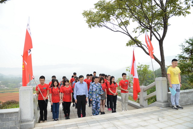 揮舞旗幟,象嶼志愿者來(lái)到松毛嶺革命烈士紀(jì)念碑前
