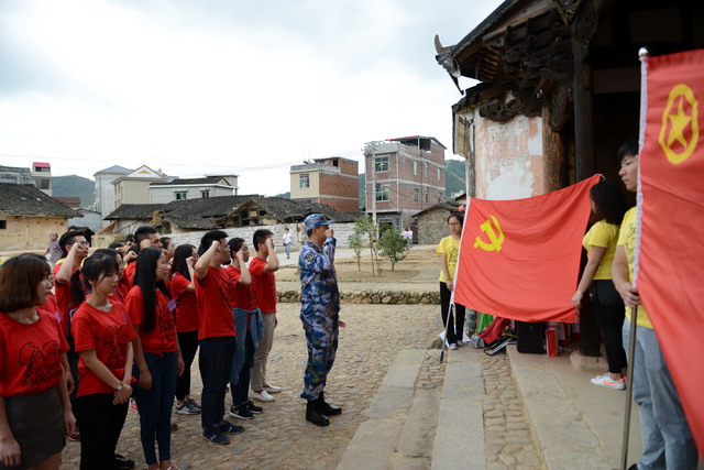 長(zhǎng)汀縣南山鎮(zhèn)中復(fù)村被譽(yù)為長(zhǎng)征第一村,象嶼人及海軍南方局一行人,一起在長(zhǎng)征“零公里處”的觀壽公祠,重溫入黨、入團(tuán)誓詞,表決心、立遠(yuǎn)志!