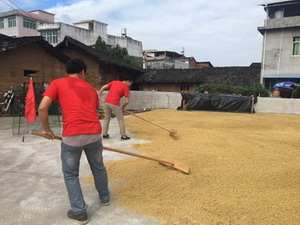 曬谷場(chǎng)的大姐說(shuō),曬谷并不簡(jiǎn)單,遇上天氣不好要反復(fù)收回,再次拆包、攤平、晾曬。曬谷揚(yáng)起的灰色還容易造成皮膚過敏。我嘗試了幾下已經(jīng)感受到腰部手臂的負(fù)荷。農(nóng)活很艱苦,但曬谷大姐仍是每日不厭其煩地勞作,微笑面對(duì)自己的生活。
