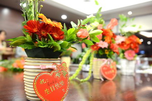參加培訓(xùn)的女職工們用自己的插花作品祝福集團21歲生日快樂