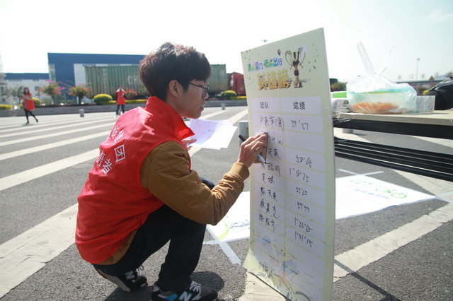 繞過10米處的石墩子,還需要繞回起點(diǎn)才能完成比賽。不少選手在360度大轉(zhuǎn)彎這里栽了跟頭,引得觀眾直呼:“慢一點(diǎn),注意安全!”來回20米,象嶼港灣的周賢僅用了17秒9就完成比賽,問鼎繞樁賽英雄榜冠軍!