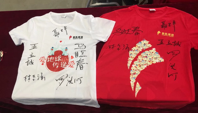 聶老等兩岸世界冠軍們,還在象嶼集團文化衫上留下珍貴簽名。