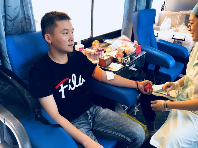 今年象嶼集團(tuán)的第一位獻(xiàn)血者是從大嶝島起早特地趕過來的,來自象嶼新為天公司的蔡曉田,不到8:30,他就已經(jīng)獻(xiàn)出自己的愛心了。