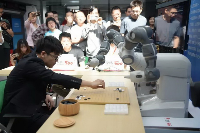 從開幕式就擺好擂臺的圍棋機器人“棋智”,在現(xiàn)場也接受了不少愛好者的挑戰(zhàn)。挑戰(zhàn)宣言是“只要下滿50手(機器人執(zhí)白棋)勝率達到30%及以上,均獲得主辦送出精美禮品”。不過,這位擁有智能眼、手、腦,造型可愛的圍棋機器人,擁有可分等級的圍棋智能對弈系統(tǒng),落子超級精準迅速,初始勝率40%。除了開幕式柯潔鎮(zhèn)住了它,現(xiàn)場的愛好者們都沒能挑戰(zhàn)成功。不過,挑戰(zhàn)者們依然興致勃勃,“能親手跟智能機器人過招,實在太過癮了!”