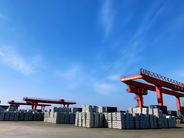 在河南鞏義象道物流園區(qū),來(lái)自新疆準(zhǔn)東、石河子的鋁錠碼放得整整齊齊。