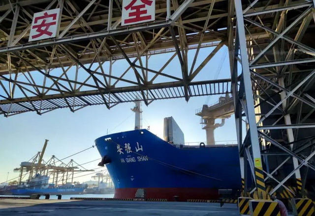廣東省廣州市,象嶼股份與中遠(yuǎn)海散運(yùn)合作的班輪,滿載5萬(wàn)噸玉米,??吭趶V州新港。這樣的班輪,每30天就有一班。這些糧食從富錦走鐵路到大連,從大連走海路到廣州,公路運(yùn)輸比重不到全程的1/10,運(yùn)輸成本大大降低。