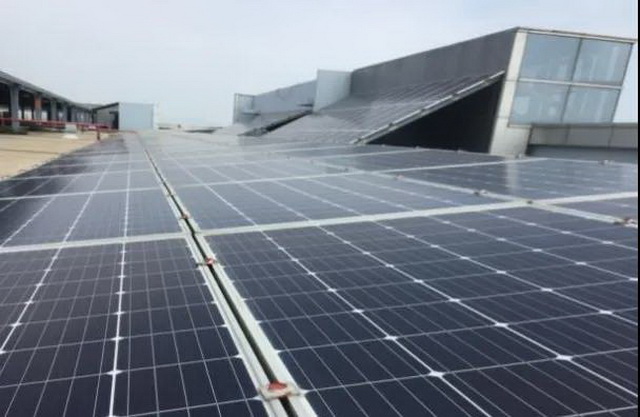 福建省廈門(mén)市,廈門(mén)跨境電商產(chǎn)業(yè)園樓頂,一塊塊太陽(yáng)能板在陽(yáng)光下熠熠生輝。這里的太陽(yáng)能發(fā)電設(shè)施占地4200㎡,每年可發(fā)電約60萬(wàn)度。