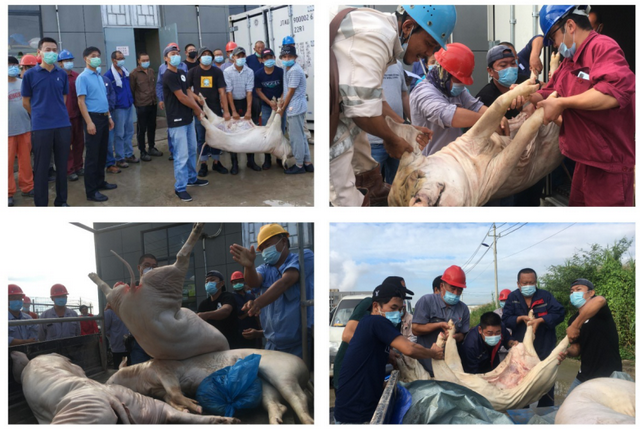 長時間停留海外、加班加點,思鄉(xiāng)、疲倦是人之常情。在象嶼集團黨委的關(guān)心下,在黨委副書記、總裁陳方的具體指導(dǎo)下,象嶼管理團隊積極行動起來,慰問外協(xié)單位一線員工??紤]到發(fā)放豬肉比較實在,又能滿足中國員工對家鄉(xiāng)味道的想念,“尋豬”一事就這樣提上日程。