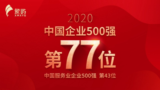 9月28日,中國企業(yè)聯(lián)合會、中國企業(yè)家協(xié)會發(fā)布2020年中國企業(yè)500強、中國服務(wù)業(yè)企業(yè)500強榜單,象嶼集團排名再創(chuàng)新高,位列中國企業(yè)500強第77位、中國服務(wù)業(yè)企業(yè)500強第43位,分別較上年前進7位和2位。