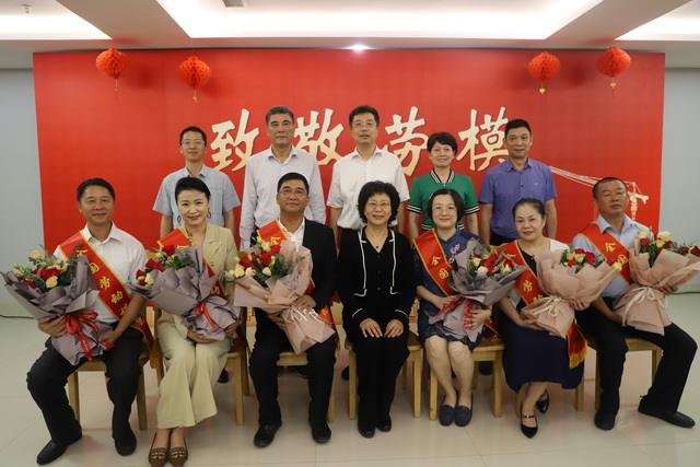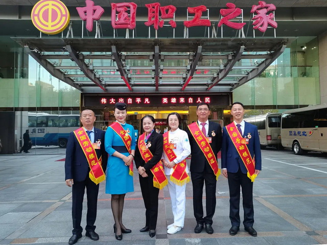 ▲出發(fā)前,市總工會為勞模舉行歡送儀式,市委常委、市總工會主席倪超等領(lǐng)導(dǎo)與即將進(jìn)京受獎的全國勞模合影留念
