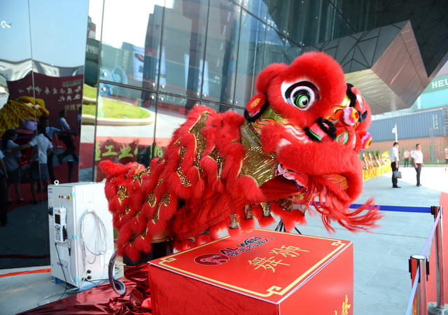 機器人舞獅門口迎賓,機器人揮毫落紙,人機互動對話,高精密機器切削“打印”專屬手環(huán)……建筑面積達8000平方米的展示交易中心處處閃爍著智能科技的魅力。
