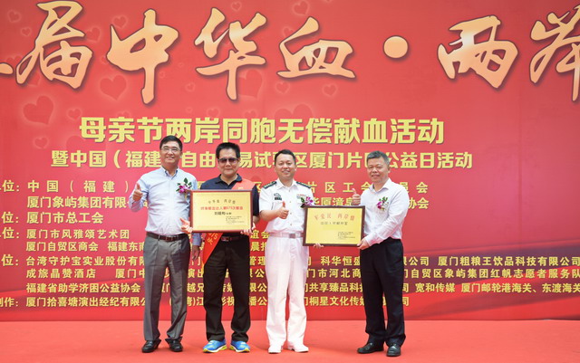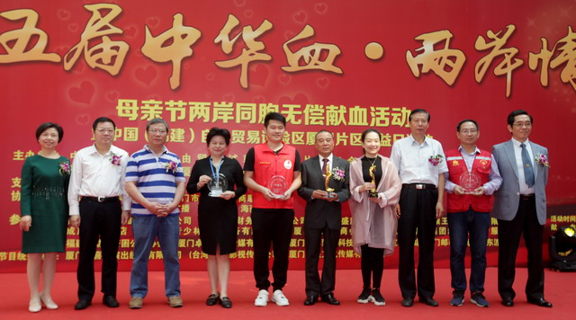 主辦方為兩岸同胞無(wú)償獻(xiàn)血公益做出貢獻(xiàn)的組織和個(gè)人頒獎(jiǎng)。