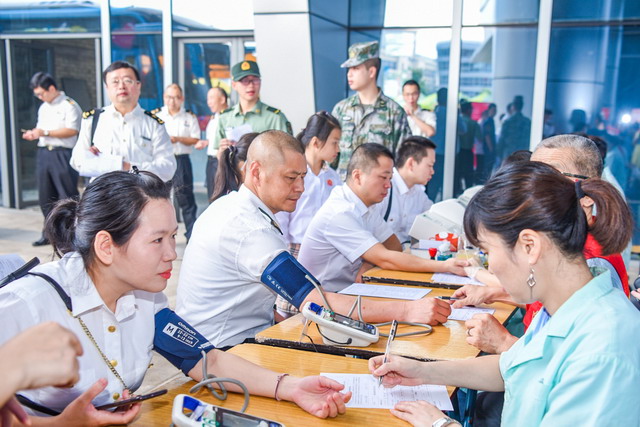 11日上午8點(diǎn)半左右,在自貿(mào)時(shí)代廣場(chǎng),除了臺(tái)胞獻(xiàn)血志愿者之外,不少?gòu)B門(mén)的職工群眾也踴躍參加。來(lái)自駐廈某部隊(duì)官兵代表,以及來(lái)自廈門(mén)海關(guān)等企事業(yè)單位的職工群眾們紛紛組團(tuán)前來(lái)獻(xiàn)血,整齊的隊(duì)伍、陽(yáng)剛的面容成為一道亮麗的風(fēng)景線,不僅體現(xiàn)了軍民魚(yú)水深情,更體現(xiàn)了兩岸一家人的大愛(ài)無(wú)疆。