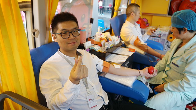 11日活動(dòng)接近尾聲時(shí),還有一群無(wú)償獻(xiàn)血的義工們走上了采血車(chē),伸出手臂參與獻(xiàn)血,他們既是今年活動(dòng)現(xiàn)場(chǎng)幫忙組織的志愿者,又是參與無(wú)償獻(xiàn)血的志愿者。