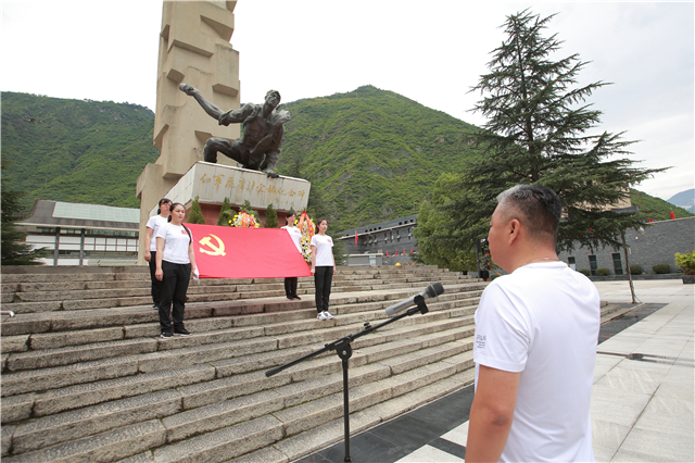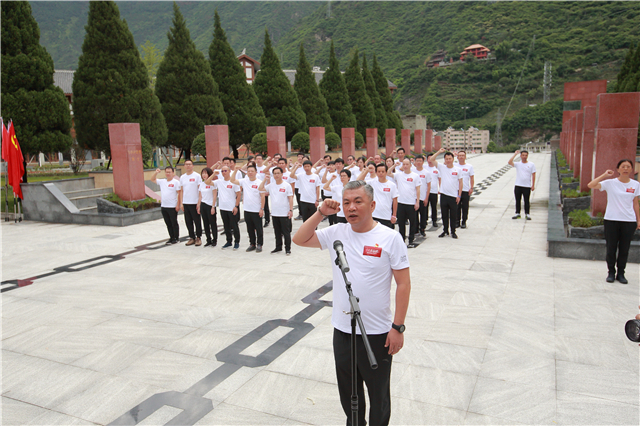 重溫入黨誓詞,牢記入黨初心。在紅軍飛奪瀘定橋紀(jì)念碑前,在鮮紅的黨旗下,劉志宏書記帶領(lǐng)全體黨員舉起右拳,神情莊重、精神飽滿,齊聲重溫入黨誓詞,感受涌動(dòng)的初心,激發(fā)前行的動(dòng)力。鏗鏘有力的宣誓聲響徹現(xiàn)場(chǎng),宣示著“挑戰(zhàn)之旅”廣大黨員堅(jiān)定不移的政治信念和矢志奮斗的堅(jiān)強(qiáng)決心。