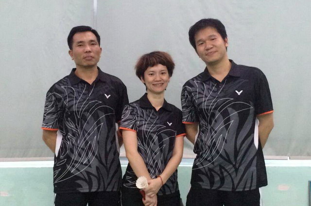 集團(tuán)公司代表隊(duì)隊(duì)員合影(左起傅根海、胡秋云、陳炳忠)