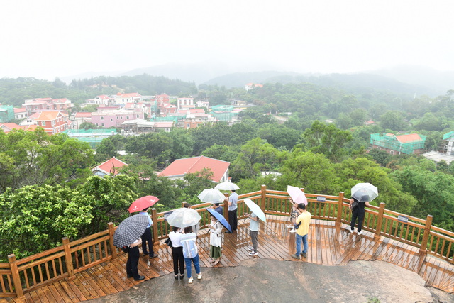 6月26日,微雨中的東坪山格外秀美。站在位于東坪山中心位置的鄭成功東坪弈棋景點(diǎn),天風(fēng)海濤,滿目蔥蘢,十分愜意。很難想象,幾年前這里曾被5棟違章建筑所占據(jù)。