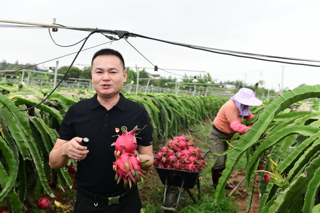 眼下,翔安大宅的村民迎來最忙碌又富足的日子——火龍果的采收期到了。果田里,下垂的綠色枝條上掛滿了火龍果,果農(nóng)們采摘?jiǎng)幼鞲蓛衾?,不一?huì)兒小推車上就裝滿了火龍果。這些果實(shí)除直接銷售外,還將加工成各種火龍果制品,陸續(xù)銷往全國各地。7月,我市農(nóng)業(yè)節(jié)事活動(dòng)的新亮點(diǎn)之一——第三屆火龍果文化旅游節(jié)將在這里舉辦,奏響一二三產(chǎn)融合、推動(dòng)鄉(xiāng)村振興的新樂章。