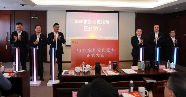 黨委副書(shū)記邵蕰默,黨委委員、象嶼股份黨委書(shū)記、總經(jīng)理鄧啟東,黨委委員、紀(jì)委書(shū)記許振龍共同發(fā)布象嶼文化讀本