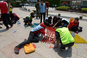 為幫助競(jìng)選者更好地樹(shù)立無(wú)邊界組織思維,本次拓展一改常規(guī),分組成員不再固定,每一環(huán)節(jié)都作動(dòng)態(tài)調(diào)整,每位競(jìng)選者需要不斷尋找新合伙人、組建新團(tuán)隊(duì),并在這一過(guò)程中共度難關(guān)?!盎鹁€(xiàn)報(bào)到”以團(tuán)隊(duì)協(xié)力奔跑的方式幫助競(jìng)選者釋放自我、直入主題;“我是大富翁”讓競(jìng)選者體悟到資源整合優(yōu)化的重要性,建立起合作共贏的團(tuán)隊(duì)意識(shí);“步步高升”、“斗轉(zhuǎn)星移”、“左右開(kāi)動(dòng)”不僅勞其筋骨,更苦其心志,考驗(yàn)著每位競(jìng)選者的抗壓能力、分工協(xié)作以及風(fēng)險(xiǎn)意識(shí);“七巧板”因小失大的全軍覆沒(méi),則讓競(jìng)選者們集體沉默,開(kāi)始學(xué)著跳出個(gè)人利益優(yōu)先的思維局限,重新思考個(gè)體在團(tuán)隊(duì)中的角色定位,并更深地理解“共贏”、“利益最大化”等詞匯的內(nèi)涵。歷經(jīng)艱苦的身心洗禮,競(jìng)選者們?cè)谑展夙?xiàng)目“多米諾骨牌”中空前凝聚,“天災(zāi)人禍”只會(huì)讓他們愈挫愈勇,烈日下神經(jīng)的緊繃、匍匐的姿態(tài)和接續(xù)的汗水只為贏得最后勝利。從各式象嶼文化創(chuàng)意造型,到最后集體創(chuàng)作的多彩象嶼集團(tuán)標(biāo)識(shí),青年象嶼人通過(guò)骨牌表達(dá)著對(duì)集團(tuán)的熱愛(ài),他們對(duì)象嶼夢(mèng)的向往與追求也從中展露無(wú)遺,正如他們?cè)诩磁d晚會(huì)上的所歌所舞所演,青春激情、夢(mèng)想綻放,就在你我身上。