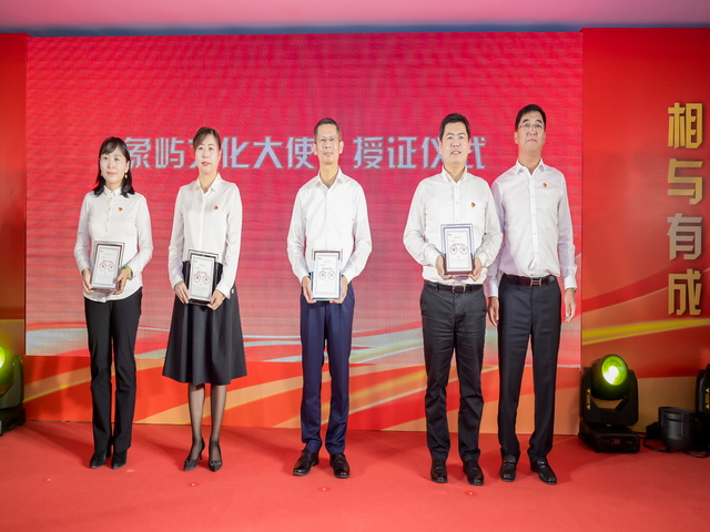 ▲象嶼集團(tuán)黨委書記、董事長張水利為新加盟企業(yè)高管頒授“象嶼文化大使”證書