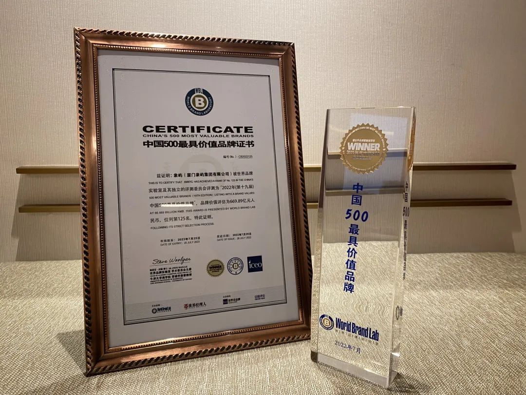 7月26日,由世界品牌實(shí)驗(yàn)室主辦的第十九屆“世界品牌大會”在北京舉行,發(fā)布2022年度《中國500最具價值品牌》分析報(bào)告。象嶼以669.89億元的品牌價值位列榜單第125位,較上一年度前進(jìn)6位。這是象嶼品牌連續(xù)4年蟬聯(lián)榜單,品牌價值較2019年首年入榜提升246.04億元。