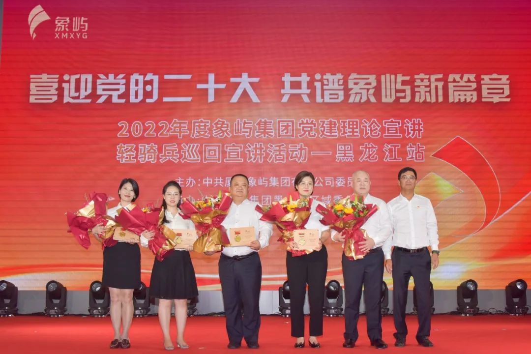 ▲象嶼集團(tuán)黨委書記、董事長張水利為宣講人頒發(fā)“象嶼集團(tuán)黨建理論宣講輕騎兵”榮譽(yù)勛章