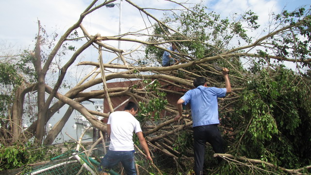 “莫蘭蒂”的威力是巨大的,在其登陸前兩個小時,港區(qū)電壓開始呈現(xiàn)不穩(wěn)定狀態(tài),時亮?xí)r暗。蘇展是值守港區(qū)的電工,為了讓安置在避險中心的數(shù)千船員有明亮的燈光,他不顧個人安危,冒著狂風(fēng)暴雨前往配電室進(jìn)行檢查。路上被風(fēng)刮起的鐵板將衣服劃破,所幸沒有受傷?!半娎|溝進(jìn)水導(dǎo)致了短路,港區(qū)全部跳閘停電,路燈燈頭也被摧毀?!碧K展有些無奈,雖然如此,他仍堅守在配電室直至風(fēng)雨漸收,確保了配電室設(shè)備沒有受到破壞。