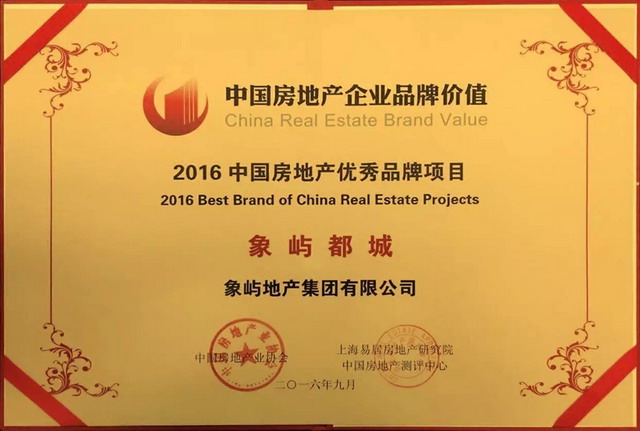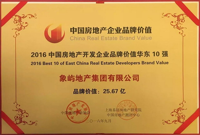 9月21日, “2016中國房地產(chǎn)企業(yè)品牌價(jià)值測(cè)評(píng)成果發(fā)布會(huì)暨房地產(chǎn)品牌發(fā)展高峰論壇”在廈門隆重舉行。會(huì)上發(fā)布了《2016中國房地產(chǎn)企業(yè)品牌價(jià)值測(cè)評(píng)研究報(bào)告》,及2016中國房地產(chǎn)開發(fā)企業(yè)品牌價(jià)值50強(qiáng)、華東區(qū)域10強(qiáng)在內(nèi)的多個(gè)相關(guān)榜單。象嶼地產(chǎn)以25.67億元品牌價(jià)值榮膺2016中國房地產(chǎn)開發(fā)企業(yè)品牌價(jià)值華東10強(qiáng),這已是公司連續(xù)第三年入圍華東區(qū)域品牌價(jià)值TOP10。此外,象嶼都城項(xiàng)目獲評(píng) “2016中國房地產(chǎn)優(yōu)秀品牌項(xiàng)目”。