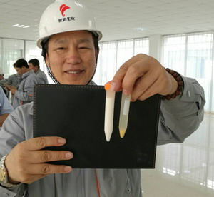 中午11時40分,淀粉車間傳來喜訊,玉米成功通過浸泡、破碎、分離、洗滌、脫水、干燥等工序后成功產出淀粉及副產品。象嶼生化生產總監(jiān)林繼民介紹,短短四小時便能一次性試車成功,這在淀粉行業(yè)史無前例,象嶼生化再創(chuàng)佳績!