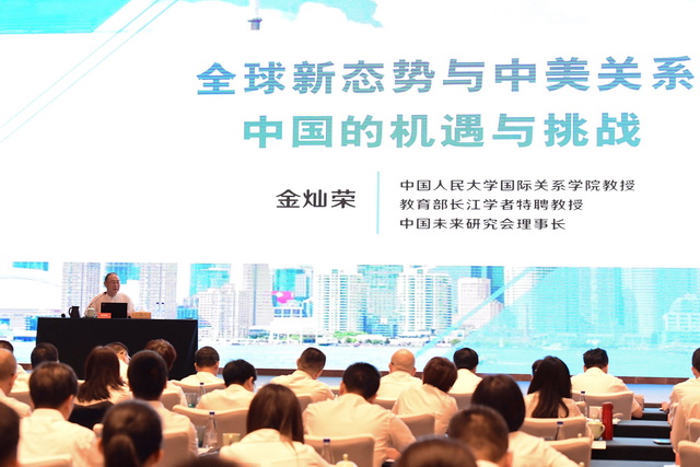為更好把握“百年未有之大變局”,加強(qiáng)對(duì)國際形勢(shì)、宏觀環(huán)境的研判與應(yīng)對(duì),本次會(huì)議還邀請(qǐng)中國人民大學(xué)國際關(guān)系學(xué)院副院長(zhǎng)金燦榮教授帶來《全球新態(tài)勢(shì)與中美關(guān)系:中國的機(jī)遇與挑戰(zhàn)》專題講座。金教授以高站位和廣視野,深刻分析國際熱點(diǎn)問題和世界經(jīng)濟(jì)重塑的基本趨勢(shì),從新的國際格局、新的現(xiàn)代化模式、新的工業(yè)革命、新的全球治理等視角解析“百年未有之大變局”,提出對(duì)中國企業(yè)未來發(fā)展的建議。