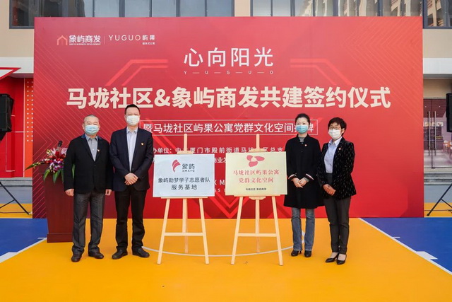 近日,廈門市湖里區(qū)殿前街道馬垅社區(qū)黨總支和象嶼商業(yè)發(fā)展聯(lián)合黨支部在廈門嶼果公寓簽約共建。殿前街道黨工委書記顏莉莉,象嶼集團(tuán)黨委副書記邵蕰默,殿前街道黨工委委員、二級調(diào)研員邱忠民出席儀式,并為馬垅社區(qū)嶼果公寓黨群文化空間揭牌。