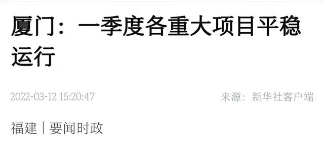 新華社以《廈門:一季度各重大項目平穩(wěn)運(yùn)行》為題,報道象嶼人今年的“快節(jié)奏”。