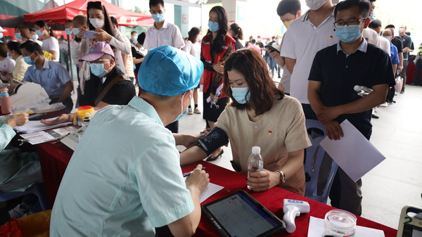 為在疫情常態(tài)化管控背景下保障活動順利進行,“紅馬甲”也成為昨天現場的另一道風景。來自主辦單位的志愿者們?yōu)楂I血者搭起遮陽棚,并引導他們戴好口罩、保持間距、有序排隊。象嶼集團還為獻血者準備了堅果、花生牛奶等營養(yǎng)補給以及感恩禮包。